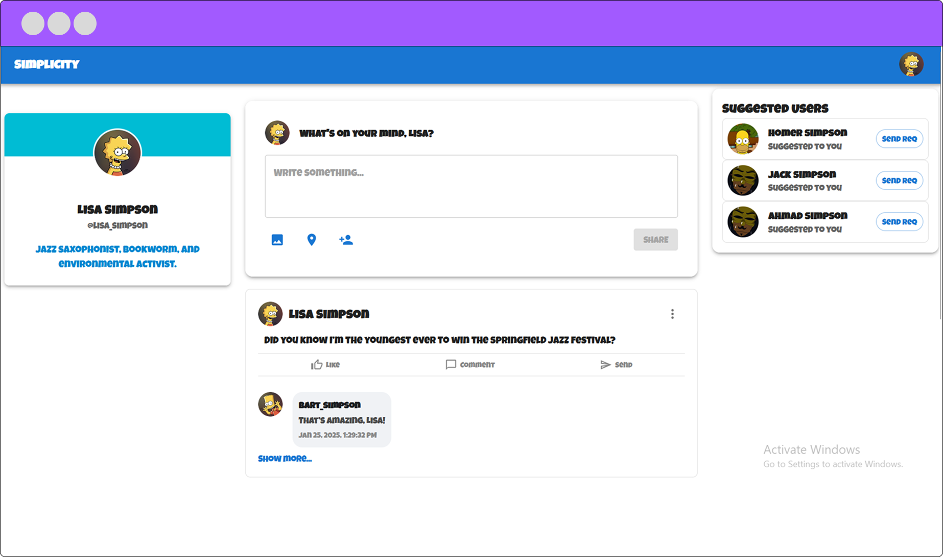 A fullstack social media application where users can create, edit, and delete posts, as well as add, edit, and delete comments on posts. Each user has their own profile page, and can manage their content through a personalized dashboard. Technologies used: React and Material UI for the frontend, with React Router for navigation. Spring Boot for backend, with MySQL for database management and JWT (JSON Web Tokens) for secure user authentication and authorization.